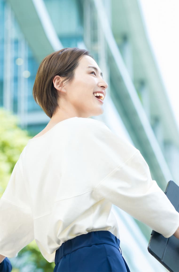 弊社は「人生100年時代に笑顔で年を重ねる女性に溢れた社会を作る」を経営理念に、特に経済的変動の多い女性に向けて、業界歴約20年超のFPが「知識のお伝え」だけにとどまらず「具体的行動のサポート」までを、キャリア形成を踏まえたうえでご提供しております。
